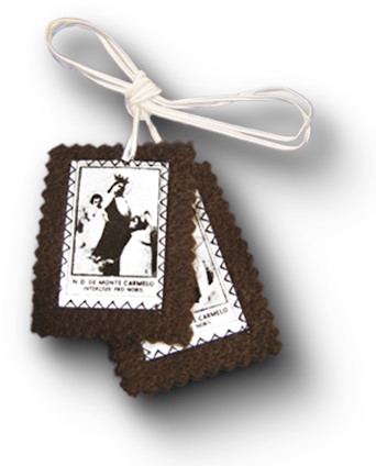 A NOTER: le scapulaire en étoffe (tissu) est requis pour la cérémonie d'imposition du Scapulaire. Ensuite, on peut le remplacer par une médaille-scapulaire bénite. |